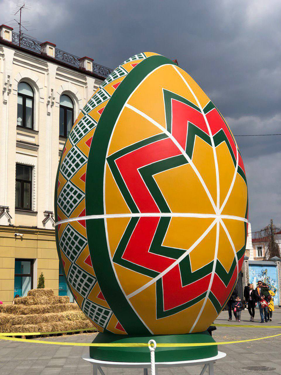 Для производства используются современные материалы: пенопласт высокой плотности, пластик и композит, которые обеспечивают прочность конструкции и устойчивость к погодным условиям. Размеры таких декоративных писанок могут достигать 2–3 метров и более, что делает их эффектным элементом праздничного оформления города.